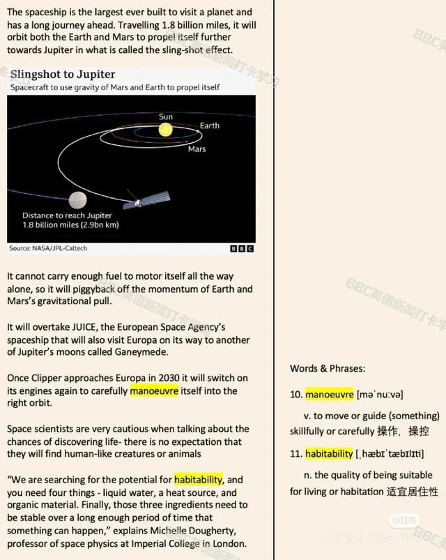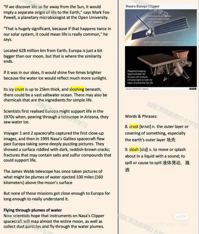 它将会超过“JUICE”,这是欧洲航天局的宇宙飞船,在前往木星的另一颗卫星木卫三(Ganymede)的途中,它也将访问木卫二。
